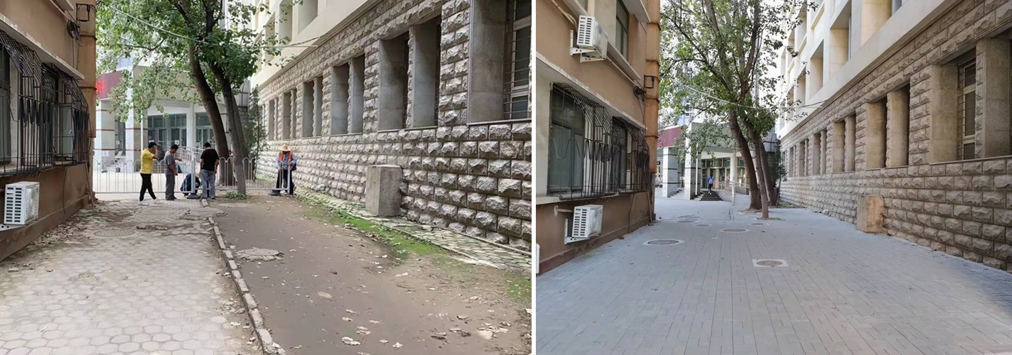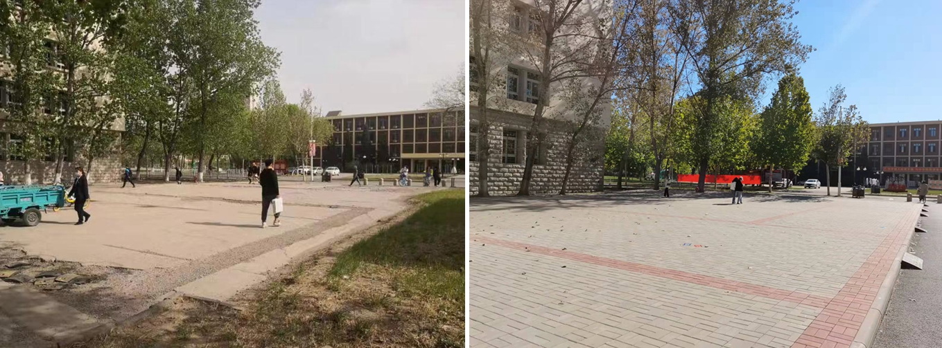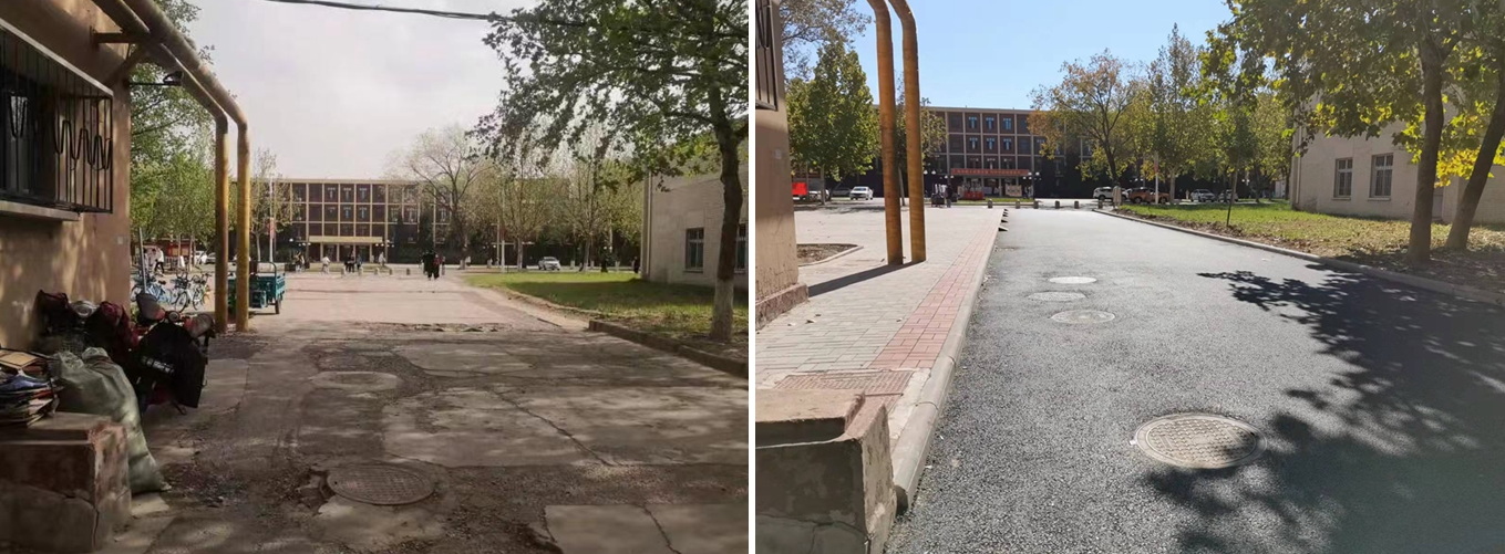 三号教学楼西侧道路原状高低不平,给师生出行带来不便。学校党委和行政高度重视,安排专门资金,在各部门通力协作下,克服地下各类管道复杂、基础数据不齐全等施工困难,对该道路进行全面提升改造,重新铺装沥青混凝土路面和人行道地砖,改造了部分景观,合理规划了三号教学楼人员疏散通道。