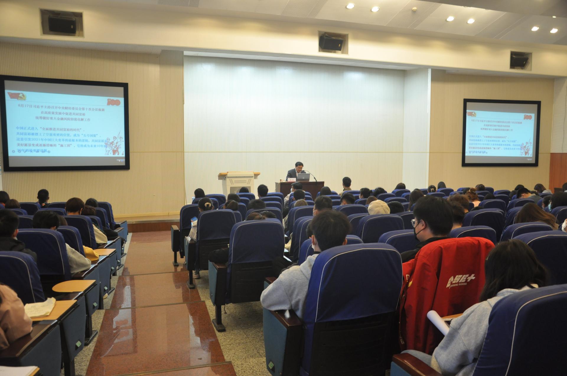 为深入学习贯彻习近平新时代中国特色社会主义思想,引导广大学生学好党史、新中国史、改革开放史和社会主义发展史,激发学生的爱国主义情怀,10月27日下午,“培根铸魂学四史 百年筑梦立初心”教授团巡讲活动在七号教学楼报告厅举行。市委党史学习教育宣讲团成员、天津市委党校副校长、天津行政学院副院长徐中,市委党史学习教育宣讲团成员、南开大学马克思主义学院张健教授受邀宣讲,110余名师生参加。