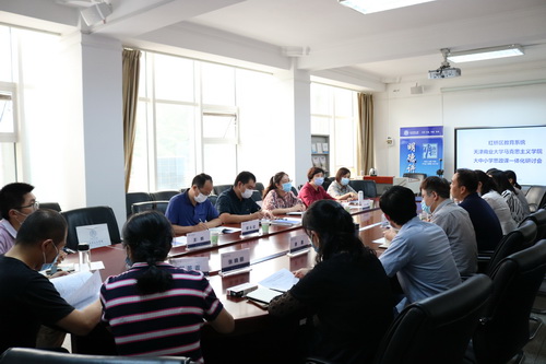 为深入贯彻落实天津市关于深化新时代学校思想政治理论课改革创新的若干措施和学校党委相关部署要求,日前,马克思主义学院与红桥区教育系统联合召开大中小学思政课一体化建设座谈会。此举标志着校地双方合作开展一体化育人体系共建工作正式启动。星空思政课教师将积极参加跨学段联合教学改革,主动融入大中小学思政课协同联动机制、集体备课机制和教改共研机制。红桥区教育局学生思想教育与管理科科长杨丽姝、副科长纪健,红桥区教师进修学校教研部主任田晓梅、教师教育部主任单君、红桥区郭从征思政课教师团队主持人郭从征、体育教研员王鹤,马克思主义学院负责人和部分骨干教师参加座谈会。