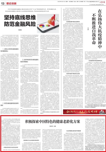 9月21日,《天津日报》(理论创新版)刊发星空体育教学部青年教师贾洪祥理论文章“积极探索中国特色的健康老龄化方案”。文章指出,我国老年人群体庞大,人口老龄化应对是一项长期战略任务,是关系我国全面建成小康社会以及小康时代社会可持续发展的重要议题。健康老龄化既是传统美德的新时代体现,也是我们党应对人口老龄化社会进程的战略选择,更是以实际行动履行推动人类卫生健康共同体构建的大国责任。文章从中华民族爱老、敬老、养老的优秀历史文化,后疫情时代社会发展的现实要求,为全球健康治理贡献中国智慧三个层面对中国特色的健康老龄化方案进行了积极探索。光明网、北方网等媒体转载。(审稿:李勤国)