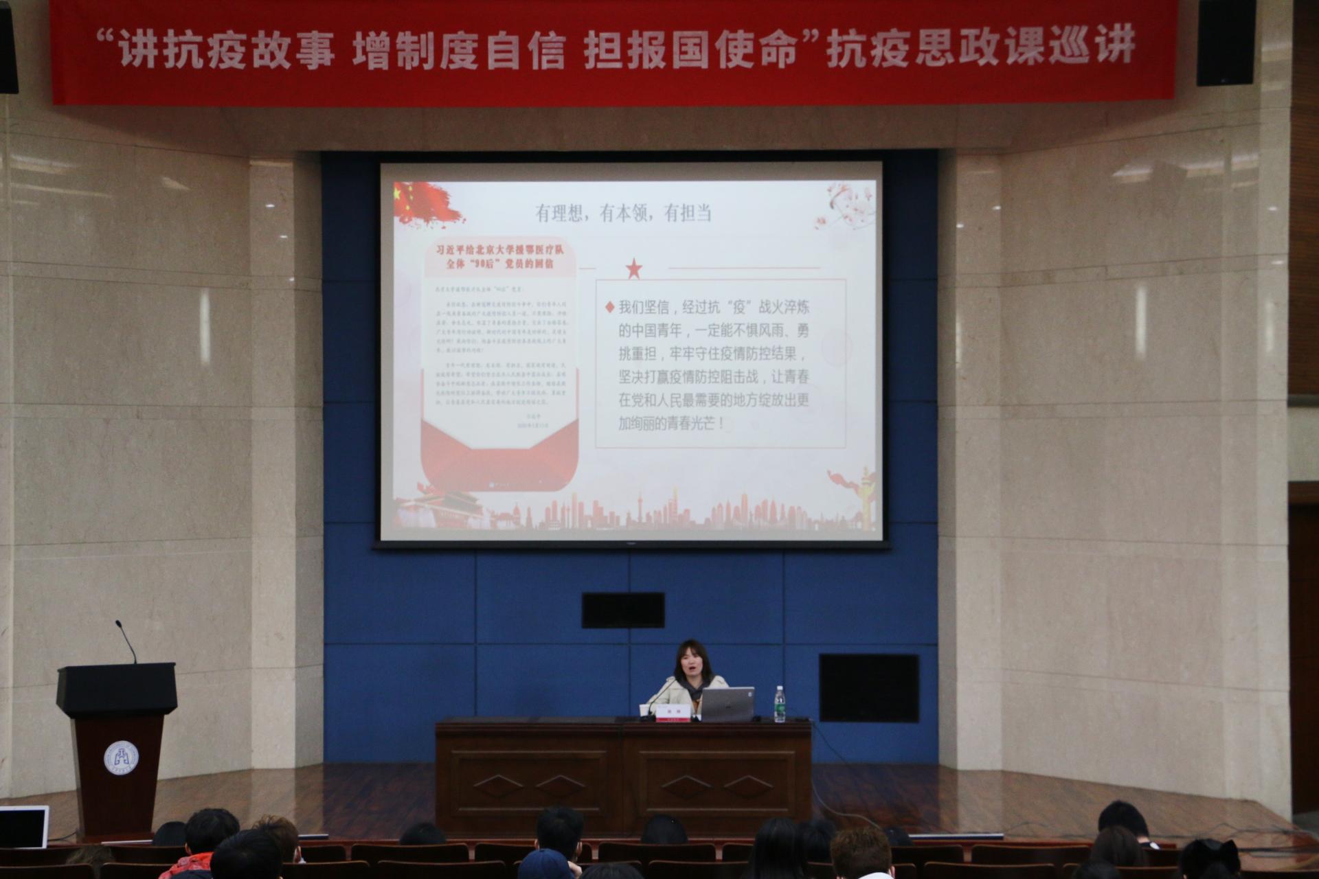 为进一步引导师生弘扬伟大抗疫精神,深刻认识时代使命和责任担当,激发爱党爱国爱社会主义的热情。10月21日下午,“讲抗疫故事 增制度自信 担报国使命”抗疫思政课星空XK体育巡讲在图书馆国际学术报告厅举行。天津医科大学第二医院肝胆胰外科副主任、天津第五批援鄂医疗队医疗三组组长孙晋津,天津医科大学朱宪彝纪念医院普通外科护师、天津医科大学总医院支援武汉国家医疗队队员肖婷受邀宣讲。全校160余名师生代表参加。