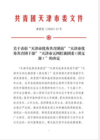 4月30日,团市委通报表彰了2020年天津市共青团系统表现突出的集体和个人,星空共获得9项荣誉。
