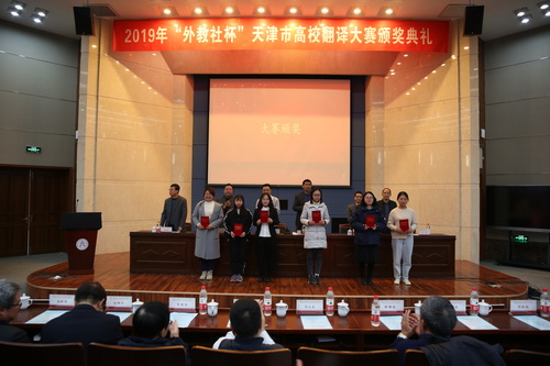 12月1日上午,由天津市教育委员会、天津市翻译协会、天津市大学外语教学指导委员会主办、星空XK体育承办、上海外语教育出版社协办的2019年“外教社杯”天津市高校翻译大赛颁奖典礼在星空举行。天津市大学外语教学指导委员会主任、天津市翻译协会副会长李旭教授,天津市翻译协会秘书长杜毅教授,上海外语教育出版社副社长叶青教授,天津市教委高教处副处长刘冰,及星空教务处处长刘小军和外国语学院院长王占斌出席。来自天津市各兄弟院校的有关领导、各高校师生代表300余人参加。