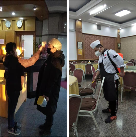 为杜绝疫情在学校发生,后勤处要求国培餐厅及校园超市体温测量合格后方可进入,就餐师生饭前务必洗手,实行分散就餐。安排人员每日检查后厨卫生和加工操作,每日闭餐后对餐厅进行全覆盖式消毒。食材配送中心和校园超市专职人员值守,每日盘点库存并及时储备,严格易变质类采购进货查验与记录制度等重点环节,确保用餐食材和师生必需品的安全供应。对校园道路、教室、办公楼、图书馆、实验楼、校医院等重点区城和场所的环境卫生,每天做好开窗通风和消毒消杀工作。注重工作细节,做好卫生间、电梯按钮和公共通道门把手等重点区位的消毒处理。除办公楼、临时隔离观察点、假期供餐餐厅外,对楼宇整体封闭管理。在能源管理与维修方面,实施日报告制度,保障学校水、电、气、暖等供应正常。同时,加强对管理人员和物业服务保障人员的培训,提高疫情防控意识,做实做细防控每个环节。(审稿:于俊如)