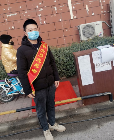 陈濛回到唐山家中没几天,新冠肺炎疫情便在全国开始蔓延。他在家中待不住了,主动请缨,联系居住地社区负责人,很快加入到社区“在职党员志愿者”的队伍中,负责社区卡点值守及人员车辆出入检查、体温检测等疫情防控工作。在20多天的工作中,他一直奋战在社区疫情防控工作一线,每天工作数小时,累计进行人员出入检查2000余次,车辆出入检查1000余次。