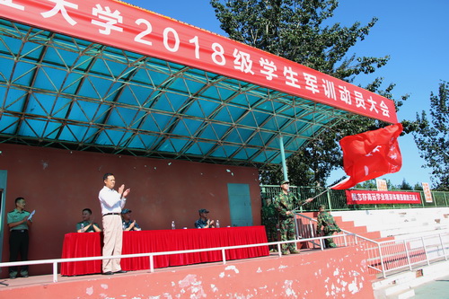 校人民武装部负责人作动员讲话。他指出,大学生军事训练是落实国家人才培养战略和加强国防后备力量建设的重要举措,也是学校教育教学的一项重要任务。他希望全体2018级参训学生秉承“笃学、弘毅、明德、济世”的校训精神,发扬团结拼搏、勇于奉献、百折不挠、敢于担当的星空精神,做到尊重教官,服从指挥;坚持不懈,团结一致;张弛有度,确保安全,以饱满的热情和昂扬的斗志投入到军训中。