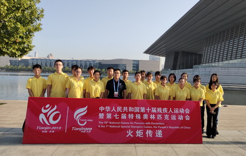 8月18日上午,全国第十届残运会暨第七届特奥会青年志愿者上岗仪式在天津市青少年活动中心演播厅举行。经过前期的笔试、面试、心理测试环节,星空从报名的1100名学生中选拔出126名大学生志愿者参与此次志愿服务。星空志愿者代表还参加了上午在天津文化中心广场举行的圣火采集暨火炬传递起跑仪式。根据组委会安排,星空志愿者主要负责象棋赛事服务工作、开闭幕式服务工作以及餐饮服务工作。