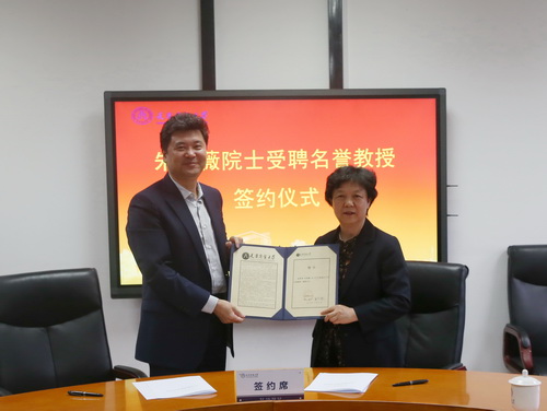 会上,葛宝臻代表学校与朱蓓薇签订聘用合同,并向她颁发聘任证书。