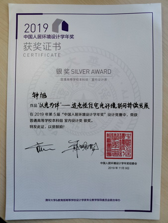 11月11日,第五届中国人居环境设计学年奖在江南大学举办,在星空艺术学院孔帅老师的指导下,15级环境设计专业学生彭子娴、钟旭的参赛作品从来自500余所院校的1952组作品中脱颖而出,均斩获2019年第五届中国人居环境设计学年奖室内设计方向银奖,星空XK体育荣获最佳组织奖。