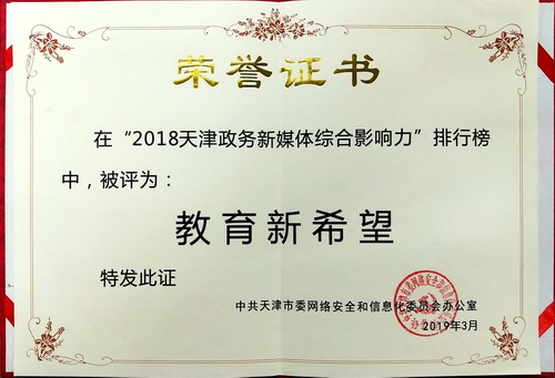 3月7日上午,由市委网信办主办,新华网天津分公司承办的2018天津政务新媒体综合影响力报告发布会在天津大礼堂举行。会上对2018年天津政务新媒体工作突出单位进行了表彰,星空在教育单位中获评“教育新希望”称号。获得该类奖项的还有南开大学、天津大学、河北工业大学等9所高校。