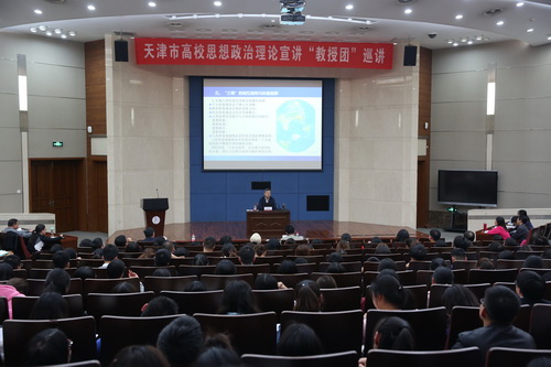 按照市委教育工委、市教委工作部署要求,11月1日下午,天津市高校思想政治理论宣讲“教授团”特聘教授、天津市社科院院长、党组书记史瑞杰作题为“扣好人生的第一粒扣子——‘三观’的三重关系与价值选择”的宣讲报告。宣讲会由校党委副书记、校长葛宝臻主持。