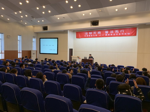 11月30日,校团委邀请法学院副教授王志强为低年级学生上了一堂主题为“法制星空、普法先行”的生动的普法课。12月4日,法学院组织师生一行20余人,赴天津中环半导体股份有限公司组织、观摩模拟法庭庭审活动,模拟真实的公司买卖纠纷。校工会组织了宪法基本知识的微信竞答活动,进行宪法知识宣传。12月5日,校工会、法律事务室邀请天津市知名律师事务所律师走进校园,为广大教职工讲解宪法知识,开展法律咨询。法学院、法律事务室共同组织法学专业师生团队走进天津市第二南开中学,为在校高中生讲解宪法知识,开展普法宣传。12月9日,法学院教师、学生和工会干部组成的法律宣讲团队,深入到天津市住宅总公司下属工地,对农民工进行宪法宣传和法律服务。法学院新媒体中心制作了宪法宣传小视频,借用师生喜闻乐见的形式增强普法效果。学校还在校园明显位置张贴、摆放宪法宣传材料等,营造宪法宣传氛围,帮助师生树立尊法、守法、用法的理念。