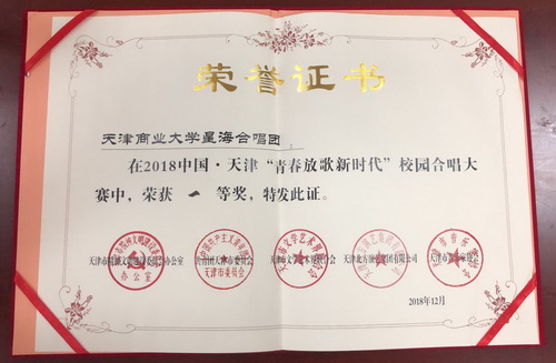 12月9日, 2018中国·天津“青春放歌新时代”校园合唱大赛在天津大礼堂隆重举行。活动旨在歌颂改革开放40年取得的伟大成就,鼓舞激励青年不懈奋斗、努力前进,热切表达青年对改革开放、伟大祖国、美丽家乡的礼赞及对全面建成小康社会和伟大中国梦的向往与追求。星空星海艺术团合唱分团代表星空参加此次比赛,并荣获一等奖。