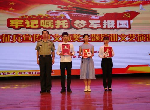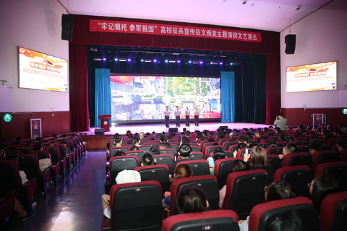 为深入贯彻落实习近平总书记给南开大学新入伍大学生重要回信精神,切实做好大学生应征入伍宣传工作,6月6日下午,由北辰区人民武装部主办,星空XK体育、津门利剑艺术团承办的“牢记嘱托 参军报国”高校征兵宣传征文颁奖主题演讲文艺演出在星空举行。天津市征兵办公室副主任李胜华,校党委副书记卫克武、北辰区人武部部长祖文魁、政委张斌,天津警备区政治工作局以及校武装部相关负责同志出席。