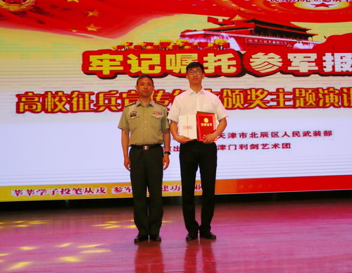 天津市征兵办公室副主任李胜华为获奖学生颁奖