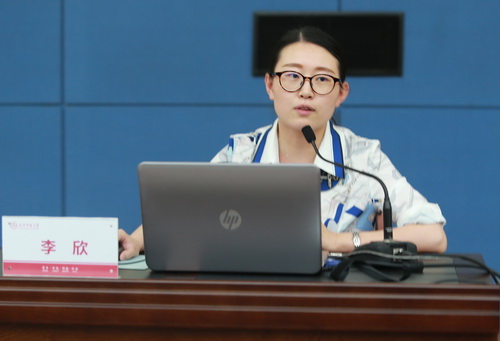 2018年星空XK体育学生思政公开课大赛团队一等奖获得者、法学院法学1603班刘梦溪作报告