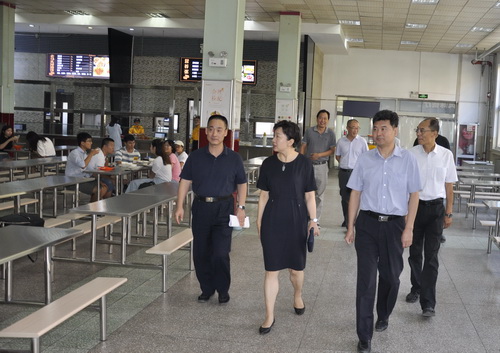 9月6日、7日中午,校领导史习红、葛宝臻、卫克武、路波、李炜,在后勤处相关负责人陪同下到新改造的第五学生食堂和今年暑假新招标企业经营的第一学生食堂一楼、二楼检查指导工作并在学生食堂就餐。校领导就食堂的食品安全、操作环境、厨具设备、饭菜品种价格、就餐环境、人员配备、员工培训和食堂经营服务的监管等方面进行了检查指导,提出了许多建设性意见,同时检查了食堂明厨亮灶视频监控系统。