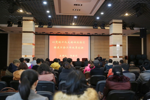 12月4日上午,校工会邀请市总工会副巡视员、常委郭振影来校做题为《以党的十九大精神为指引,推进新时代工会工作改革创新》的专题讲座。校工会委员会委员、各分会主席及工会委员、校工会全体干部共60余人参加。