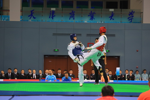 上午9点,比赛拉开战幕,共有16名女子运动员和16名男子运动员分别参加女子-49公斤级和男子-58公斤级两个级别比赛。经过多轮较量,江西选手谭雪琴以8-7战胜决赛对手安徽选手刘凯琪,获得女子-49公斤级金牌,刘凯琪遗憾摘得银牌,铜牌由江苏选手刘利平与北京选手詹天瑞获得。江苏选手吴瑞东以4-3战胜河北小将陈博琳,获得男子-58公斤级冠军,陈博琳获得亚军,吉林选手王余龙与广东选手陈小艺共同获得季军。跆拳道项目竞委会主任、校长葛宝臻,副主任、国家体育总局拳击跆拳道运动管理中心副主任董军为男子组获奖运动员和教练员颁发了奖牌和纪念品,江西省体育局局长晏驹腾,竞委会副主任、副校长齐恩平为女子组获奖运动员和教练员颁发了奖牌和纪念品。