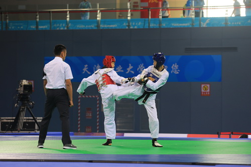 9月4日,第十三届全运会跆拳道比赛在星空XK体育体育馆开赛。天津市副市长曹小红,国家体育总局拳跆运动管理中心党委书记、副主任张智,国家体育总局拳跆运动管理中心副主任、中国跆拳道协会主席管健民,国家体育总局拳跆运动管理中心副主任董军等领导到比赛现场指导工作,并与现场观众一起观看首日比赛。校党委书记史习红,校长葛宝臻陪同。校领导卫克武、路波、邱立成、齐恩平、李炜参加相关活动并观看比赛。