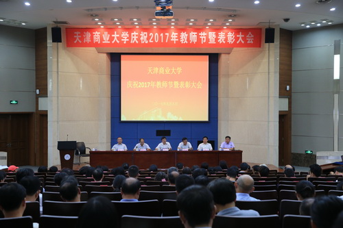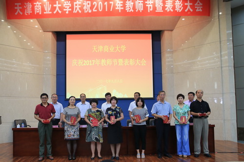 葛宝臻代表学校向获奖教师表示热烈祝贺,向默默耕耘、辛勤工作的广大教职工致以节日的问候和衷心的感谢。他指出,一年来,学校深入学习贯彻落实全国和天津市高校思想政治工作会议精神,积极加强教师思想政治工作,将师德建设摆在更加突出的位置,师德建设长效机制逐步建立健全。在全体教职工的共同努力下,教风学风总体状况不断向好,人事分配制度改革深入推进,应用型专业建设逐步加强,成功申报2017—2020年博士学位授予权立项建设单位,新增2个市级重点学科,高层次人才引进工作继续优化,获批成为推荐优秀应届本科毕业生免试攻读硕士研究生资格单位,与法国巴黎高等师范大学等联合主办了“2017年材料与能源及多孔传热国际学术会议”,圆满完成了全运会跆拳道项目比赛的承办工作,学校的影响力和美誉度持续提升。他希望广大教师充分认识当前学校发展面临的重大机遇和严峻挑战,以先进典型为榜样,自觉做黄大年式“四有”好老师,不忘初心、开拓进取,以饱满的热情、昂扬的斗志和踏实的作风,积极投入到教育事业和学校的发展建设上来,为建设高水平商业大学努力奋斗,以优异成绩迎接党的十九大胜利召开。