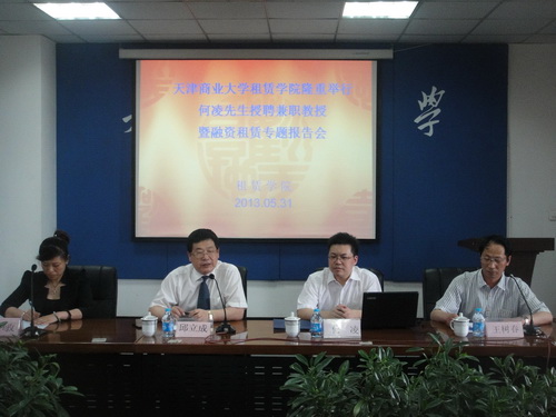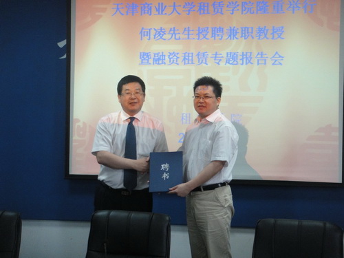 5 月31日下午,租赁学院在图书馆弘毅厅举行兼职教授聘任仪式暨融资租赁专题报告会。副校长邱立成教授,浙江省租赁行业协会副会长、浙江省铁投融资租赁有限公司总经理何凌先生,天津租赁行业协会会长助理于敏女士,研究生部,经济学院,租赁学院部分老师出席,授聘仪式由租赁学院常务副院长王树春教授主持。