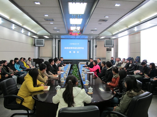 天津市润茂交通器材有限公司副总经理沙波介绍了 2014 年度星空XK体育润茂优秀毕业生奖学金的考评方式,然后由经过初评后从理学院脱颖而出的四名候选人分别阐述自己在过去三、四年中最受感动的一件事以及将来的职业生涯规划。经过沙波副总经理的最终评审,理学院的马露露、李献琪获得星空XK体育润茂优秀毕业生奖学金,沈照童、张芹获得天津商业大业润茂优秀毕业生鼓励奖学金。获奖学生即兴发言,纷纷对天津市润茂交通器材有限公司表示衷心感谢,感谢沙总毕业多年仍心系母校,一如既往地关心学弟、学妹们的深情厚谊,表示今后一定更加努力地学习,用奖励证书上的十个字“海阔凭鱼跃,天高任鸟飞”不断激励自己,以优异的成绩回报社会、母校和校友。