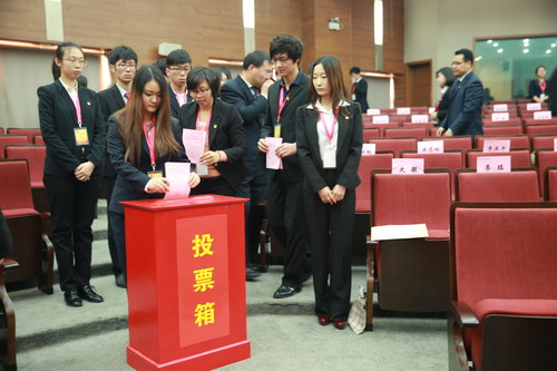 闭幕式上,大会一致通过了关于团委工作报告的决议。 校团委书记王雷在闭幕式上向全校团员青年发出倡议, 要求各级团组织以实施本次大会提出的目标为工作重点,努力构筑亮点突出、内容丰富、形式新颖的校园文化活动体系。充分发挥共青团组织的优势,在理论学习与社会实践、学风建设与创新创业、文体艺术与全面发展等几个方面引导和帮助广大学生不断提高自己的能力和水平,全面成才。