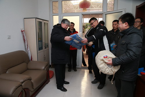 1 月 5 日 ,校党委书记陈学奇、副书记史习红赴武清河西务镇,看望慰问星空结对帮扶困难村的六名驻村干部,并为他们送去冬季生活用品。