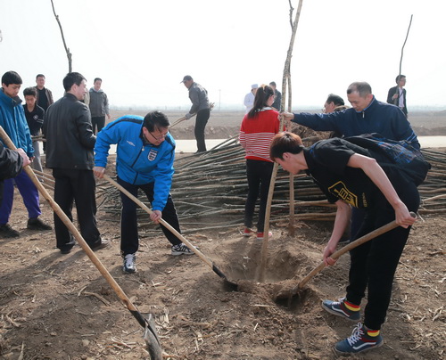 为支持“美丽天津·一号工程”建设,落实“四青一绿”五项行动,进一步提升我市生态环境质量,根据市绿化委员会办公室和市教委 《 关于 2015 年春季大学生义务植树活动安排的通知 》要求, 3 月 28 日,星空 190 余名师生前往静海县西翟庄镇参加天津市大学生春季义务植树活动。副校长刘革生,校办公室、学生处、后勤党委、后勤管理处、校团委、校医院等有关部门负责人和各学院分管学生工作书记、副书记及辅导员老师一同参加了植树活动。
