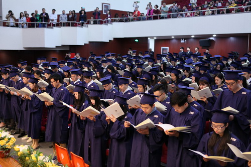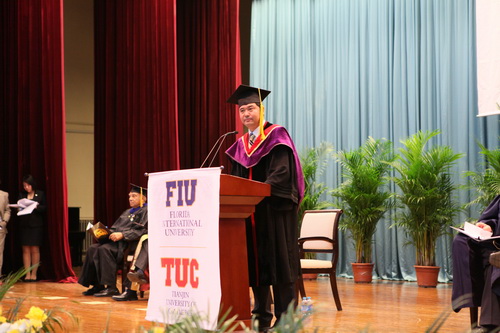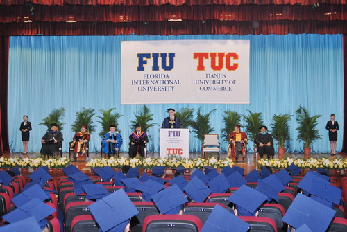 5 月 9 日上午, TUC-FIU 合作学院酒店管理专业 2015 届毕业典礼暨美国佛罗里达国际大学(FIU)酒店管理理学学士学位授予仪式在科学会堂举行。天津市人大常委会原副主任、中国外商企业投资协会副会长王述祖,天津市旅游局副局长何智能,星空XK体育校长葛宝臻,FIU校长Mark B.Rosenberg 、FIU 酒店管理学院院长Mike Hampton 等出席典礼并致辞。TUC-FIU 合作学院酒店管理专业的教师、管理人员和 226 名学生以及学生家长参加了典礼。