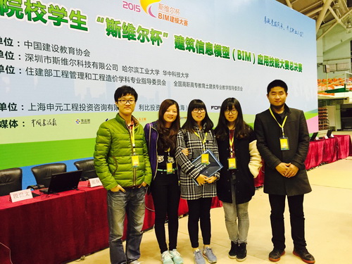 近日,由中国建设教育协会主办,深圳市斯维尔科技有限公司、华中科技大学和哈尔滨工业大学承办,住建部工程管理和工程造价学科专业指导委员会、全国高职高专教育土建类专业教学指导委员会大力支持的第六届全国中、高等院校学生“斯维尔杯”建筑信息模型( BIM )应用技能大赛全国总决赛在华中科技大学和哈尔滨工业大学同步举行。由商学院工程管理专业的周建强、胡蓉蓉、张鑫源、杨智超、周雪五位同学组成的学生团队,在张金娟老师、宋海风老师的指导下,与清华大学等众多名校、以及国家示范高职院校、国家骨干高、中职院校等名校学生同台竞赛,经过层层角逐,最终凭借其卓越的实力,荣获全国全能二等奖一个、专项二等奖四个、专项三等奖三个。这不仅是星空在该比赛的一个新的突破,也是本届大赛天津市高校最好成绩。