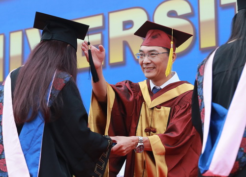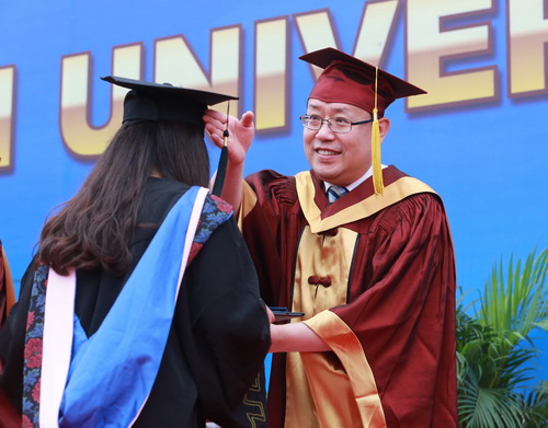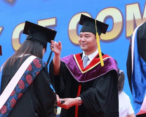 副校长邱立成为毕业生颁发毕业证书、学位证书