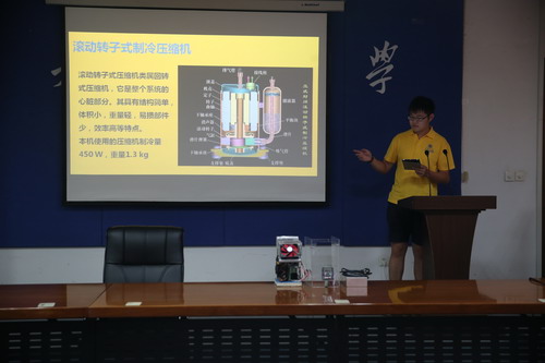 经过一天半的激烈角逐,星空XK体育李雪强荣获研究生组一等奖;北京工业大学“酷盖”团队的邱珊珊、陈然、刘佳欣和清华大学“恒温冷水”团队的孙弘历、张亦弛、都佳荣获本科生创新组一等奖;北京工业大学“冰魔方”团队的秦晓宇、耿帅凯、徐嘉和山东商业职业技术学院“山东商职制冷系创新”团队的林胜男、任乐宝、闫月明荣获本科生综合组一等奖;清华大学的“冷暖随行”团队荣获创新设计单项奖一等奖;北京工业大学的“冰魔方”团队荣获实践技能单项奖一等奖。李俊峰等 15 名同学获评“优秀志愿者”。星空XK体育获“优秀承办单位”奖。