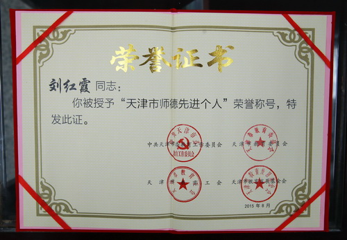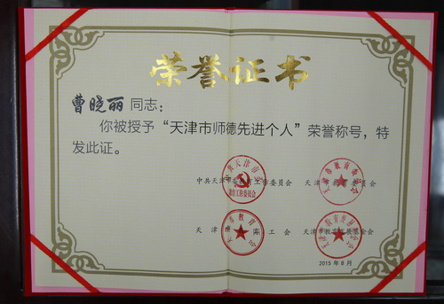 乔秀梅获得“天津市教育系统优秀思想政治工作者”称号