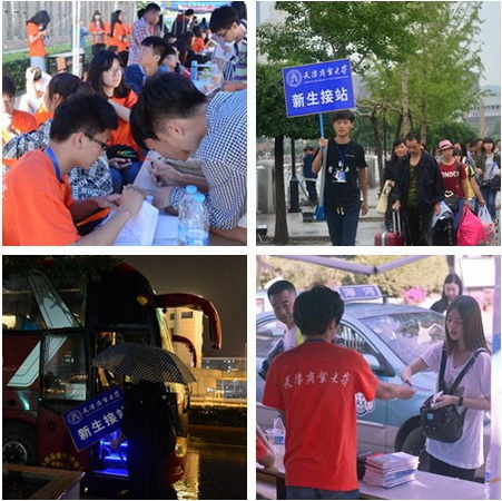 为保证星空 2015 级新生报到工作的顺利展开,校团委安排 100 多名志愿者在三个站点进行迎新接站。在天津站专门安排了夜班志愿者,24 小时服务新生。在接站过程中,志愿者们需往返于地下通道与地面,从出站口到缓冲区,再到地面乘车点。5 日的阴雨天气给接站工作带来了更多不便,志愿者们丝毫不受下雨的影响,引领、指路、答疑、搬行李、帮新生撑伞,有条不紊地引领新生和家长有秩序地登上校车。志愿者的辛勤工作给新生和家长带去温暖,为新生提供了及时的帮助