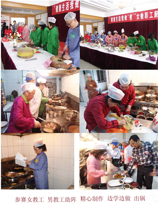 这是校工会首次举办厨艺大赛,全校各分会都派出了最强阵容,不仅有女教职工,也吸引了许多男教工前来助阵。大家在赛前研究制定菜谱,切磋烹饪技术,了解食物营养搭配的科学知识,为比赛做了充分的准备。本次比赛要求在限定时间内完成“规定菜”和“创意菜” 2 种菜品的烹制。赛场气氛热火朝天,人声鼎沸,十分热烈,从洗菜、切菜、配菜到煎、炒、烹、炸,大家忙得不亦乐乎。当一盘盘色香味俱全的菜肴呈现在桌上时,让大家赞不绝口,垂涎三尺。评委分别从色、香、味、形、刀工、创意、营养搭配、家庭实用等方面进行评分。最后,商学院获得一等奖;后勤产业,饮食集团联队,国际教育与交流、 TF 合作学联队获得二等奖;生食学院、机械学院、机关一与机关二联队、公共管理学院、高继学院联队、外语学院获得优秀奖。