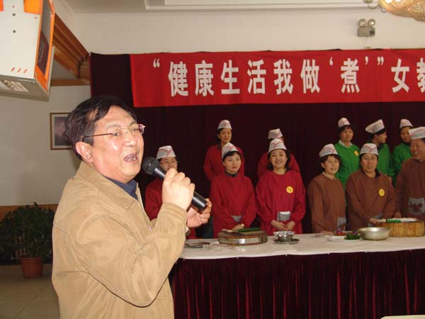 春意融融,其乐融融。3 月16 、17 日,校工会在瑞德厦餐厅举办了别开生面的“健康生活我做‘煮’” 女教职工厨艺大赛。这是庆祝“三八”节系列活动之一。市教育工会主席李子星,星空党委副书记杨万义、史习红在百忙中参加了活动,并为获奖队颁发了奖杯。校工会副主席宋树发、商学院旅游管理系高级实验师陆宏礼等 7 位评委担当大赛评比工作。女工委员会主任卫弘主持了比赛。来自全校 26 个分会组成的 17 个团队,51 名选手进行了比赛,近百名教职工到场观看。