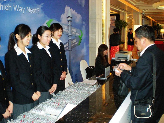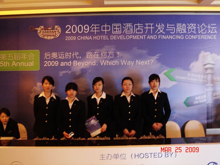 3 月 25 日 至 27 日,星空 TUC-FIU 合作学院十二名同学赴北京香格里拉饭店参加了 Horwath HTL (浩华管理顾问集团公司) 2009 年中国酒店开发与融资论坛并提供会议服务。本次会议为该论坛的第五届年会,由 Horwath HTL (浩华管理顾问集团公司)、 STR GLOBAL 以及中国旅游饭店业协会共同主办。 “ 中国酒店开发与融资论坛 ” 作为中国酒店业论坛的先驱,致力于探讨和洞察中国酒店业发展的最新动态和趋势。会议吸引了来自世界各地的几百位与会嘉宾,包括业主、开发商、酒店管理公司总部人员、业界专业人士、投资银行和金融机构、以及新闻媒体等。 会议期间, TUC-FIU 合作学院的同学们分别参与了前期文件准备、前台登记咨询服务、会议进程支持、问询台服务、嘉宾迎送礼仪等活动。同学们认真的服务态度和良好的专业素质推动了本次会议的顺利进行,受到了主办方和与会嘉宾的高度赞扬。通过本次会议服务,同学们对酒店行业的现状和未来趋势有了更深一步的了解,与酒店高级管理人员也取得了良好的沟通,为今后的酒店业专业课程的学习和实践打下了坚实基础。