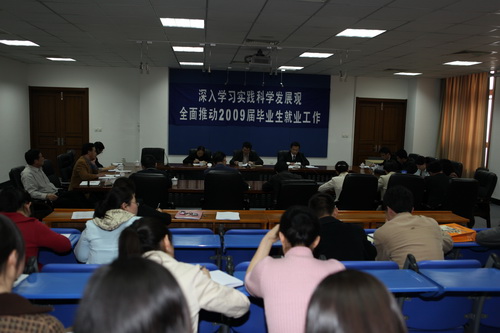 贾青处长在会议中就学校 2009 届毕业生就业工作基本情况进行了通报。机械学院、商学院、 TUC-FIU 合作学院结合本学院的专业特点,围绕为毕业生顺利就业提供有效的指导和服务交流了工作方法和成效。