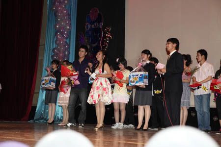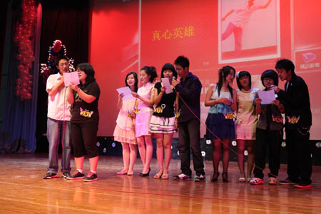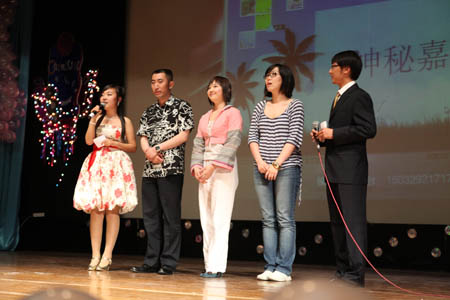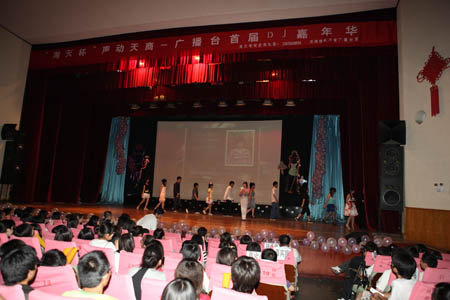5月18日晚,“声动星空”——首届校园 DJ 嘉年华决赛在科学会堂举行。校党委宣传部副部长张克明,广播台指导教师柴桐、星海艺术团指导教师严慧菁出席活动。天津人民广播电台交通台“ 1068 夜航班”节目主持人王琳、文艺台主持人浩然、慕容应邀参加活动并与校团委指导教师和校广播台高年级播音共同担任评委。当晚,10 位入围决赛的选手经过情景 DJ 秀、才艺展示和现场配音三个环节的激烈角逐,最终来自机械工程学院机械设计专业 07 级学生李然获得冠军。特别是三位电台主持人的现场点评和精彩示范把现场气氛推向高潮。