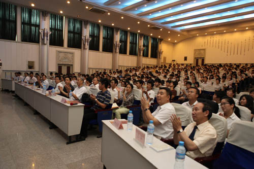 大会由天津电视台节目主持人(星空 99 级工商管理专业毕业生)史超与星空机械工程学院 07 级包装工程专业的张丽丹同学主持