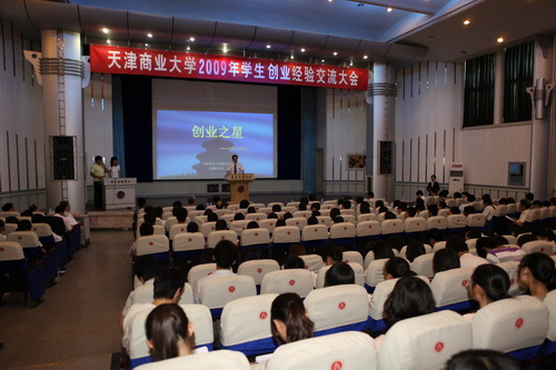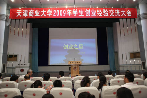 6月3日下午,2009 年学生“创业之星”经验交流大会在学术交流中心召开。校长刘书瀚、副校长魏胤亭出席大会。应邀出席大会的嘉宾有天津市维垦科技发展有限公司总经理宫民先生、天津外滩风尚咖啡有限公司总经理杨绪龙先生、天津麦购时代商业管理有限公司常务副总经理王鸿斌先生及天津人民广播电台记者刘鹏。教务处、宣传部、学生处、校团委、资产设备处、总务处等职能处室的主要负责人、各学院的主管教学院长和主管学生工作的书记均参加了大会。大会由天津电视台节目主持人(星空 99 级工商管理专业毕业生)史超与星空机械工程学院 07 级包装工程专业的张丽丹同学共同主持。