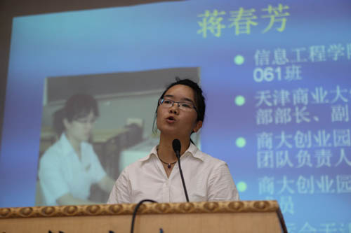 会上,来自理学院 05 级数学与应用数学专业的王道宏同学、信息工程学院 06 级通信工程专业的蒋春芳同学、商学院 05 级市场营销专业的索熙楠同学、杨鑫雅同学和潘鹏同学先后介绍了他们的创业之路,交流了他们的创业体验及收获。其间,嘉宾还就学生代表发言进行了现场提问与点评。