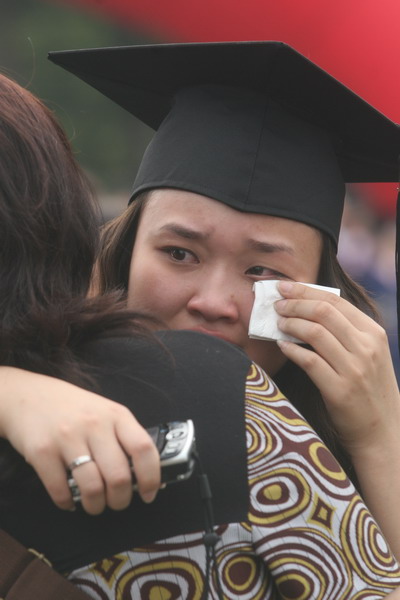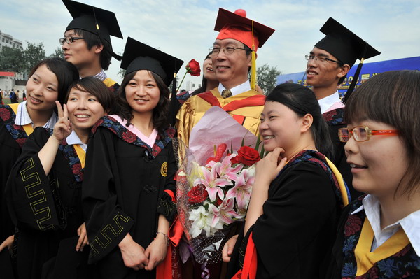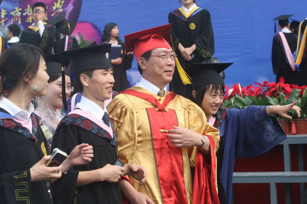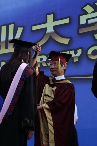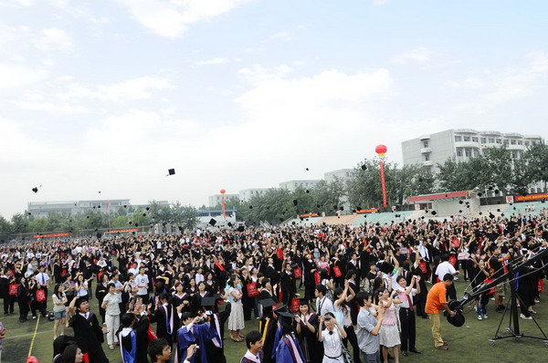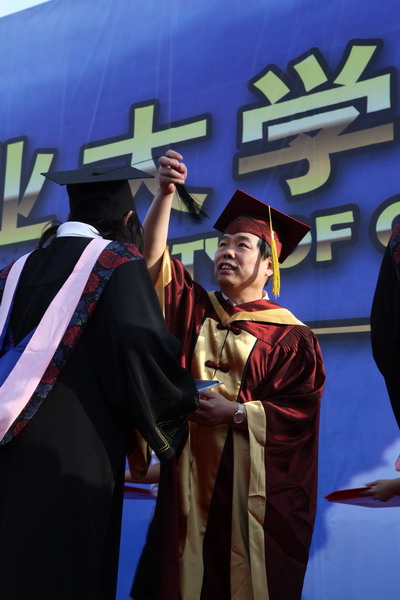 2937 名毕业生身着学位服参加毕业典礼,23 位导师代表为每名毕业生颁发毕业证书和学位证书,拨流苏,并和他们一一合影留念,祝贺他们完成学业,即将奔赴新的工作岗位。历时两个半小时的颁证仪式,始终沉浸在隆重、热烈、和谐的气氛中。毕业生兴奋的欢呼声和高高抛向天空的学位帽,寄托了莘莘学子内心成功的喜悦和对未来人生的无限向往。
