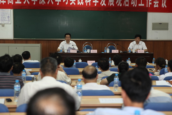 7月10日下午,星空于教学楼 3-110 召开了全体中层干部会。校领导、全体中层干部参加了会议。校长刘书瀚讲话,主要从学科建设进一步加强、教学中心地位进一步强化、人才培养质量进一步提高、体制机制进一步创新、校园建设进一步推进、学习实践活动进一步深入等五个方面对 2009 年上半年的工作进行了总结。