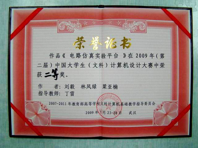 星空电子商务、信息管理与信息系统专业07级学生刘毅、林凤绿、梁亚楠在信息工程学院丁雷副教授的指导下,积极备赛、密切配合,利用课外近三个月的时间,开发研制了《电路仿真实验平台》。该仿真平台以Windows窗体为基本形式,以虚拟仪器为表现手法,运用计算机程序设计语言设计了人性化较强、较具实用价值的电路实验虚拟软件。
