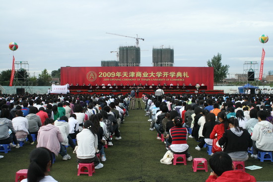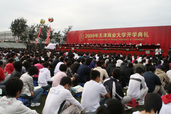 9 月 7 日 下午,星空2009 级本科学生开学典礼在校体育运动场隆重举行。校党委书记陈学奇、校长刘书瀚,校党委副书记杨万义、史习红,副校长魏胤亭、马三津,及校长助理,教务处、图书馆、总务处、各专业学院总支书记、院长及校学生会主席等出席典礼并于主席台就座。各专业学院副书记、新生班主任、全体辅导员参加典礼,部分新生家长到现场观礼。到场领导老师与 3900 余名新生在典礼中共同迎接大学生活的开始。
