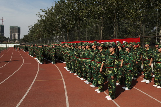 9 月 9 日上午 8 : 00 , 2009 级全体学生与武警六支队一大队 120 名官兵在校运动场见面,由此拉开了 2009 级学生军训的序幕。今年星空参加军训的 2009 级 3900 多名学生按照 4 个训练营、 103 个训练排的编制,在校内六个场地内进行训练。 军训是大学生的必修课,是法律规定在校期间必须履行的光荣义务。国家教育部、总参谋部、总政治部专门颁发并多次修订了《高等学校学生军训教学大纲》,对军训原则、内容、时间、方法等做了详细规定,为组织实施军训提供了基本遵循。在大学生中开展军训工作,是学校全面贯彻党的教育方针,推进素质教育,培育“四有”新人的重要手段,对于大学生成长成才有着重要而深远的意义。同时,组织大学生军训,是强化全民国防观念的必然要求和加强国防建设的客观需要,也是提高学生综合素质的有效途径。 2009 级全体学生表示将珍惜这次军训机会,继承和发扬革命传统,努力提高思想政治觉悟;认真学习,扎实掌握军事技能,努力强化国防观念和责任意识;严格自律,自觉刻苦训练,不断磨炼意志品质;团结协作,积极创造和谐氛围,圆满完成训练任务,以优异的成绩展现新一代大学生良好的精神风貌。