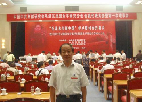 9 月 10 日 至 13 日魏胤亭副校长应邀参加了“毛泽东与新中国”学术研讨会暨中国中共文献研究会毛泽东思想生平研究分会成立大会,并经第一次理事会议选举通过,出任首届常务理事。会议由中共中央文献研究室、中共湖南省委、中国中共文献研究会联合举办,全国人大常委会原副委员长王汉斌和有关领导、来自全国各地研究毛泽东思想和生平的专家学者、毛泽东的亲属和生前身边工作人员、《人民日报》等 15 家新闻媒体的记者近 200 人参加会议。会议在湖南长沙九所宾馆会议中心举行。会议期间全体代表参观了毛泽东、刘少奇故居,并向毛泽东铜像献花。